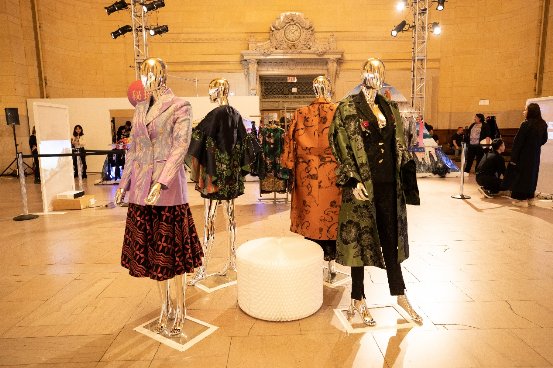 同时现场还展出了秘境最新一季“国坎”主题风格的服装,大量的提花、印花和烧花面料,融合夸张的版型设计,同时还选用了山海经中的元素进行细节点缀,充分展示“国坎”的定义,吸引了到场纽约客们的关注。秘境作为中国原创设计师品牌,首次扛起坎普风的大旗,通过服装的设计,用艺术的语言和形式充分展现出独具东方魅力的坎普,此次亮相纽约,势必将“国坎”与中国原创设计推向国际舞台。