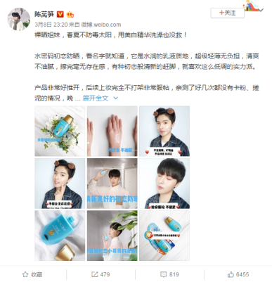 区别于以往传统的做法,水密码在今年3月就开始进入防晒推广。毫无疑问,夏季是防晒旺季,但随着防晒使用教育渐趋成熟,很多消费者早在夏季来临前就已经开始购买防晒品了,再加上“三八”妇女节是一年之中三大促销节点,因此在3月进行推广,正是抢占了消费者购买防晒品的最佳时机。