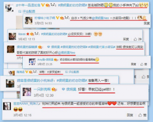 综合以上原因,水密码便火速签约侯明昊作为水感防晒系列的代言人,为他定制了“初恋男友”的人设,并以“初恋防晒,清新不油腻”的传播主题,精准触达侯明昊的粉丝圈层,让她们进一步强化对品牌的情感认同和归属,驱动理性消费向感性消费转化,成为品牌的忠实消费者。